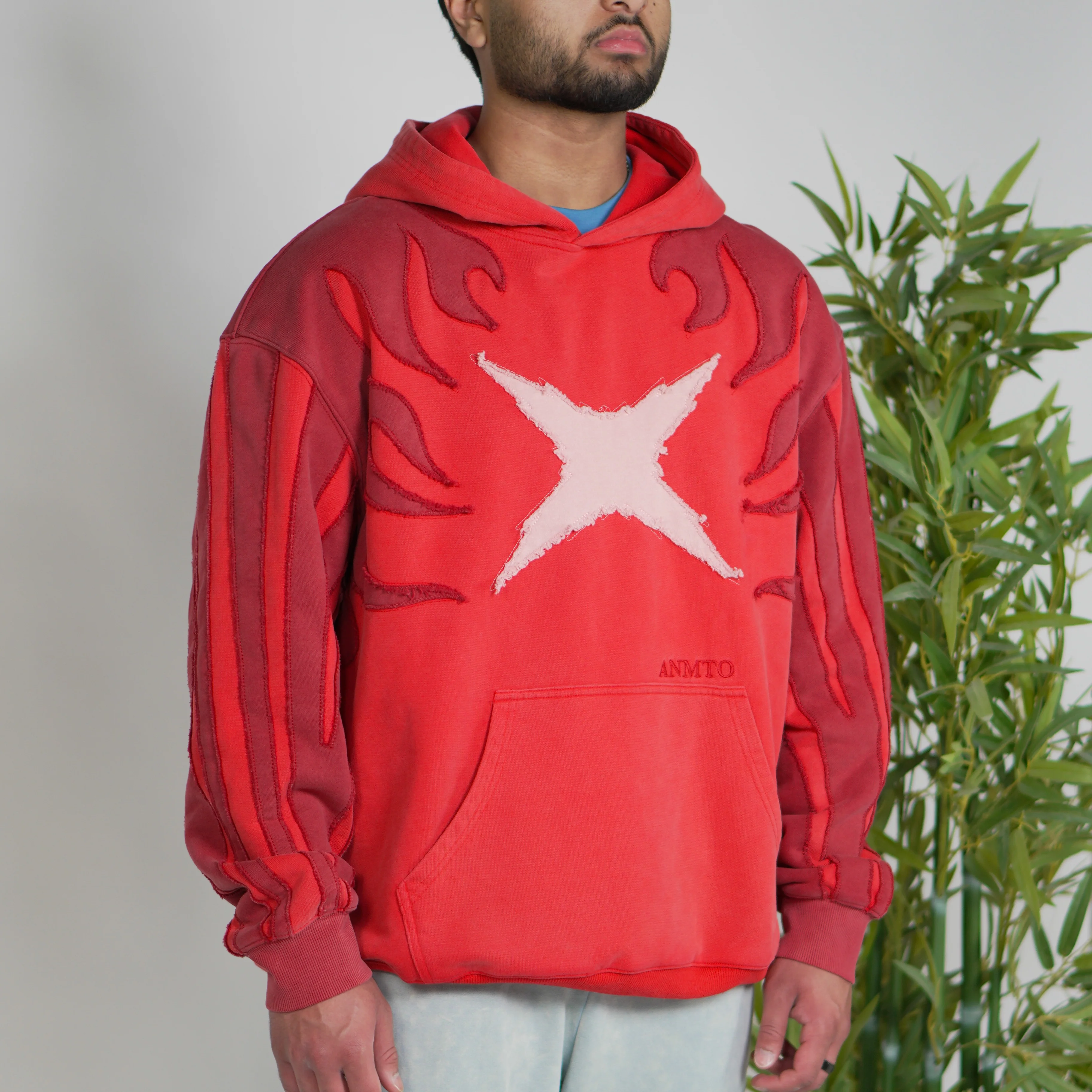 This is a premium custom cut and sew heavyweight French terry hoodie. The hoodie features many fabric-cut designs as well as embroideries to mimic the look of the form! If you look closely you can see lots of small details only fans would recognize. The hoodie fabric is very high quality and it is very breathable and flexible with a unique texture on the inside.